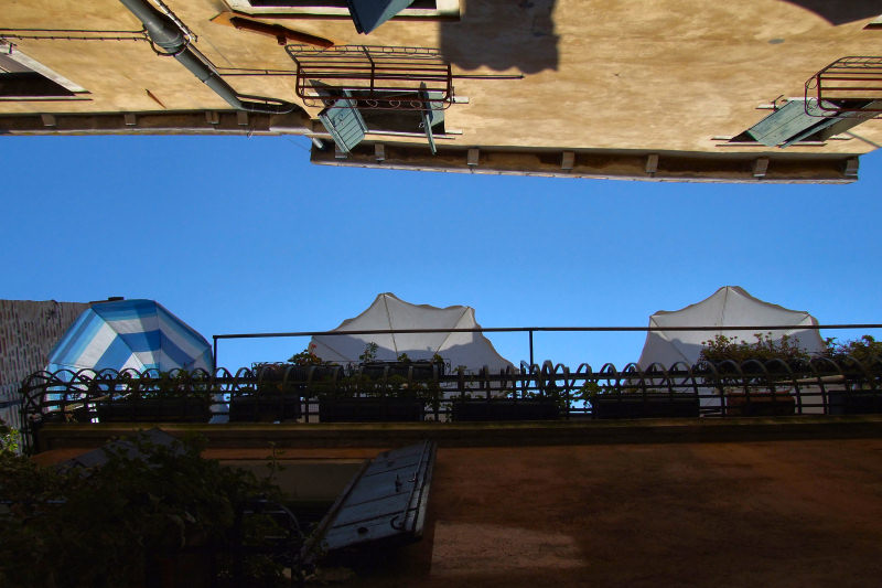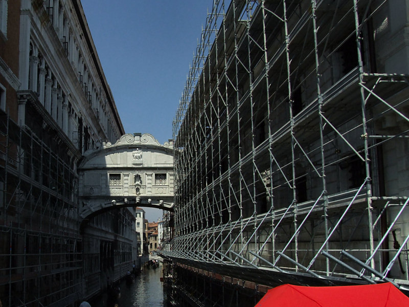 Seufzerbrücke - da ging es dann wohl in die Bleikammern Casanova?. Im vorbeigehen mit hochgehaltener Kamera (doch ganz praktisch, so ein Klapp-LCD) über die ganzen Köpfe/Sonnenschirme hinweg