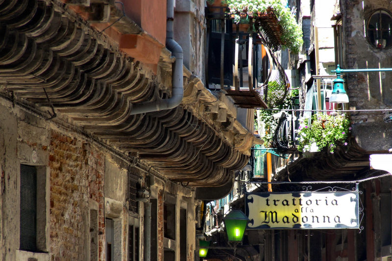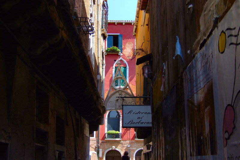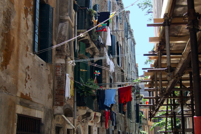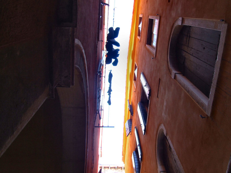 Mal ungeachtet der Hitze: Sobald man auch nur 50m abseits der üblichen Trampelpfade (Piazzale Roma -> Riva del Vin -> Rialto Brücke -> Markusplatz -> Riva degli Schiavoni -> Seufzerbrücke und zurück) geht, bzw. sich einfach so durch die Gassen treiben lässt, ist man quasi fast allein unterwegs...