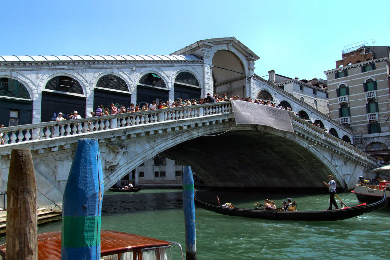 Wer aufgrund der horrenden Preise auf eine Gondelfahrt trotzdem nicht verzichten will: Z.B. am Rialtomarkt (NW der Brücke um die Ecke gegenüber Ca'd'Oro) kann man mit der Gondel preiswert (unter 1 EUR/Person) auf die andere Seite (die stehen da alle drin) übersetzen. Haben wir leider zu spät mitbekommen... Zum Fischmarkt sollte man allerdings früh aufstehen (so gegen 6h bauen die wohl auf, Di-Fr(?) 8-13h)...