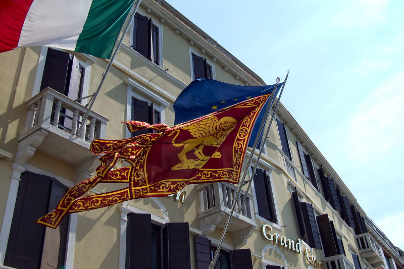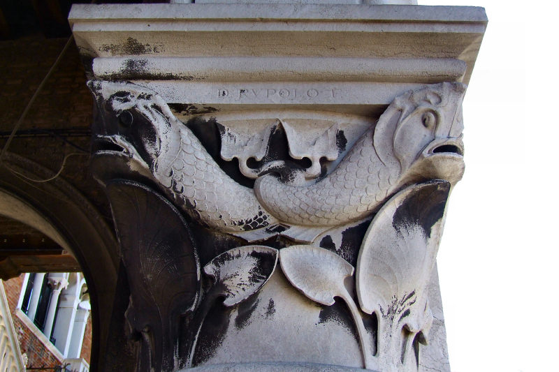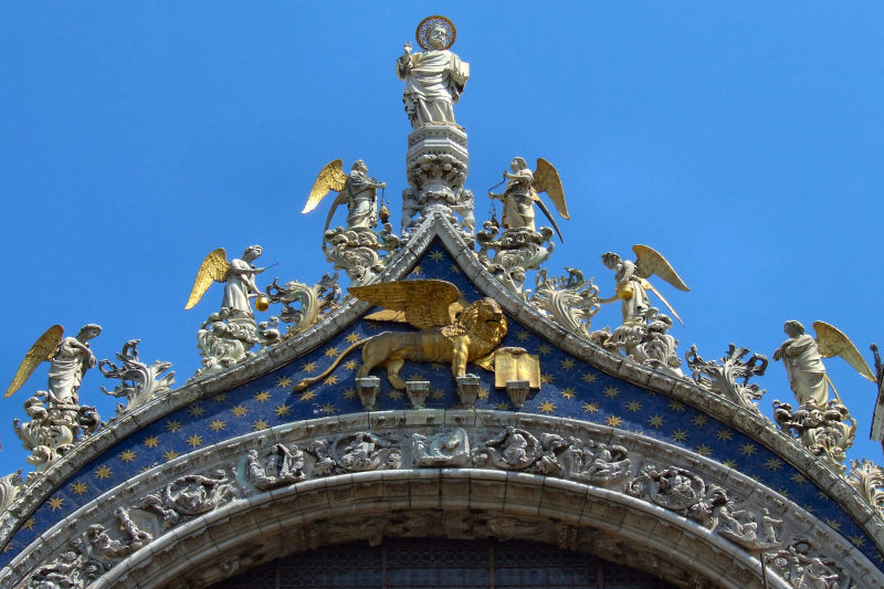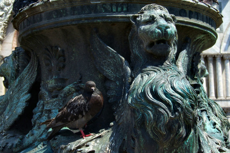 Markuslöwe und Taube, zwei überall anzutreffende Wahrzeichen der Stadt