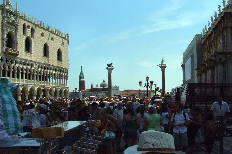 Mittagszeit in der Hauptsaison auf dem Markusplatz...